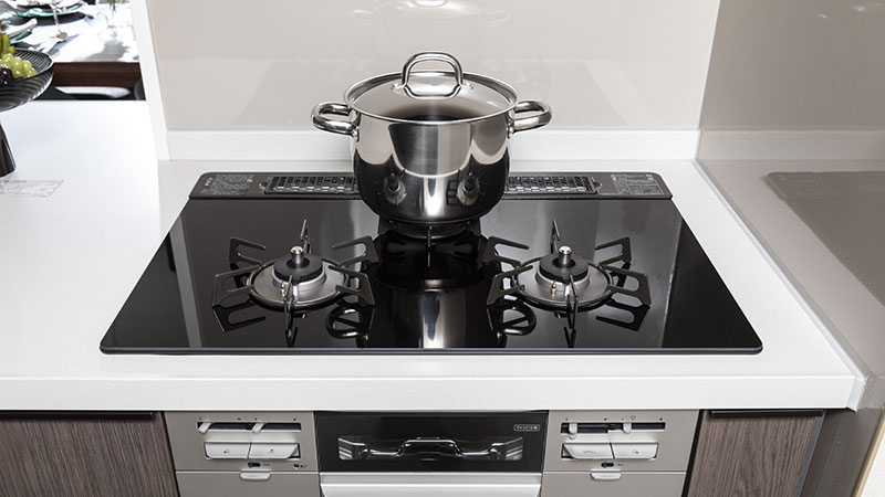 多機能がうれしいワイドガラストップガステーブルは、お手入れも簡単。ワイドタイプ(750mm幅)