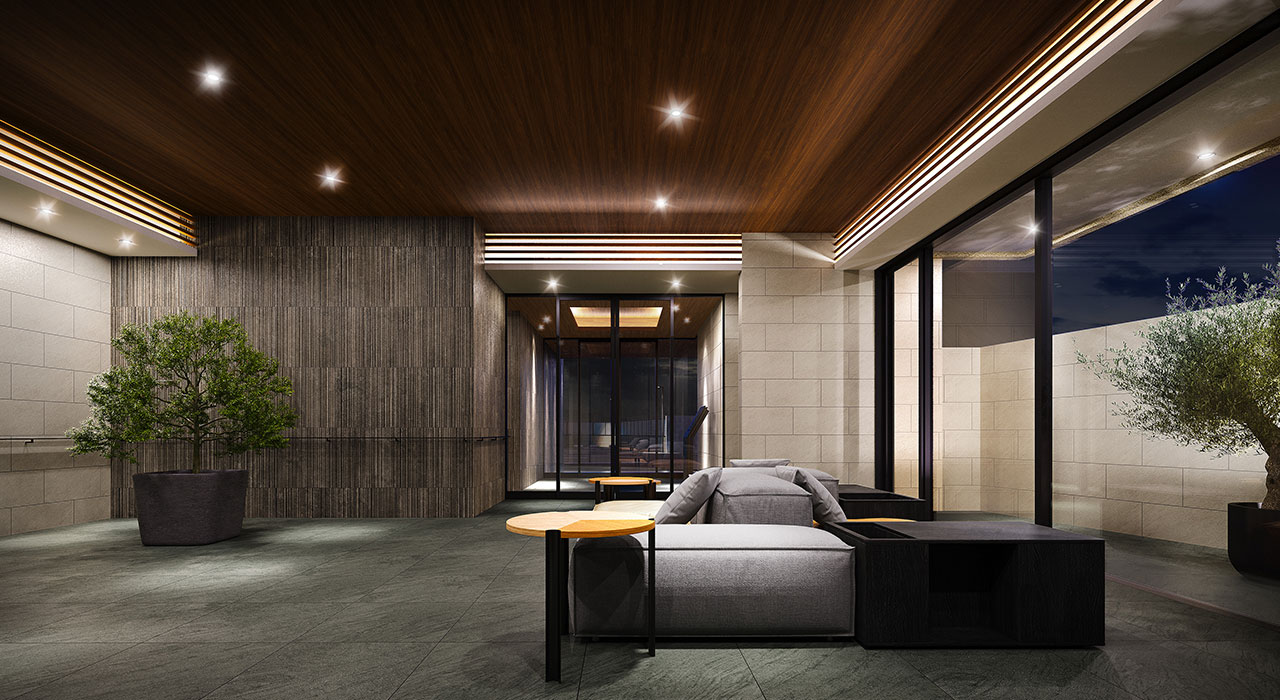 10階ペントハウスは、屋上プライベート緑地(Private Green Path)&ルーフトップテラスと一体となって、シンボリックな天空の邸宅を構成し、住まう方全てにとってのステイタスシンボルとなる。プライベート緑地にはさまさまな常緑樹や落葉樹が植栽され、四季折々の色彩で端正な外観に文字通り花を添える。