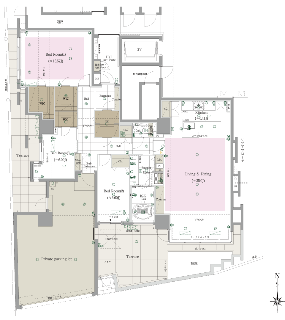 TOP Etype ROOM PLAN PREMIUM FLOOR Etype 3LDK+SIC+WIC 生活空間面積 / 240.98m2(72.89坪)テラス面積 / 55.01m2専有面積 / 141.11m2(42.68坪)専有駐車場面積 / 44.86m2 Etype 3LDK+SIC+WICFtype 3LDK+SIC+WIC+SPCLGtype 3LDK+SIC+WICHtype 3LDK+SIC+WIC+SR+PANItype 2LDK+WIC CONTACT 0120-123-556 電話受付時間 / 10:00~19:00(定休日 / 第2・3水曜日 祝日の場合は営業致します) ※掲載の図面は設計段階の図面をもとに描き起こしたもので実際とは異なる場合がございます。行政の指導、施工上の都合及び改良のため、変更する場合があります。