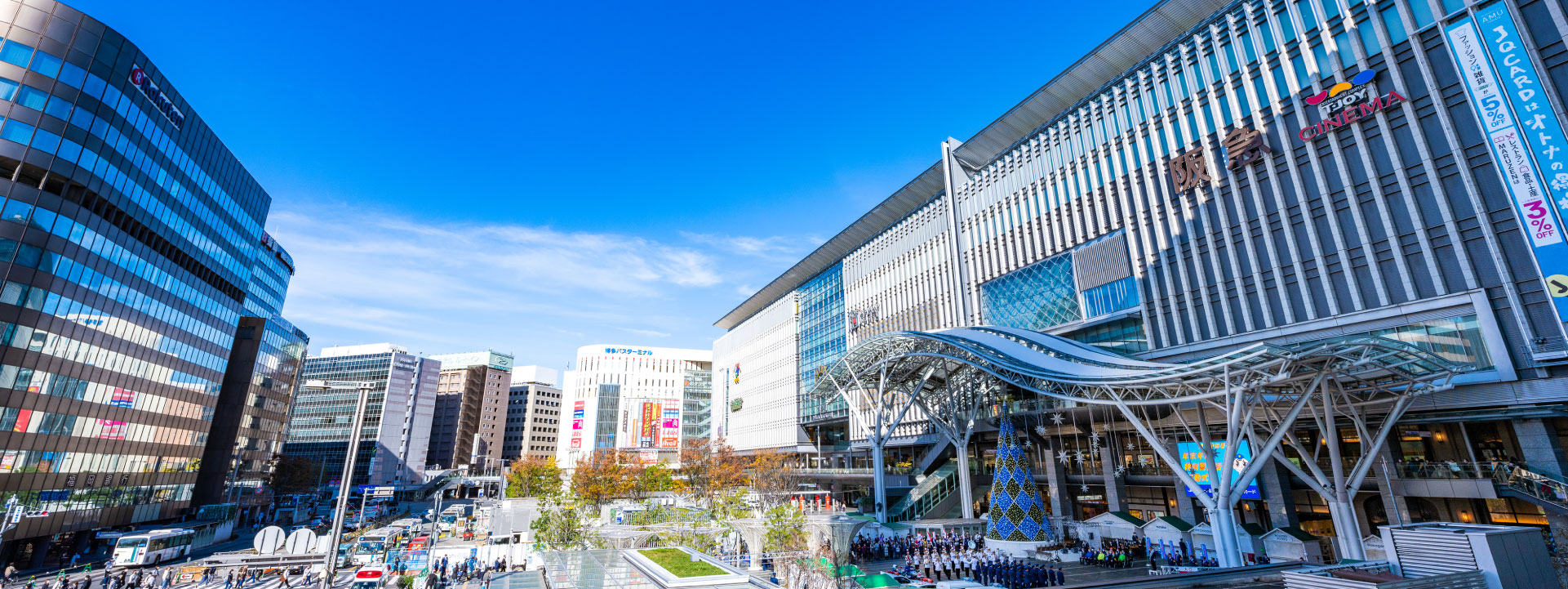 駅直結。商業施殿やオフィス、ホテルが一体となったJR博多シティ。周辺には大規模なショッピングモールやシネコンが集結し、賑わいも拡張を続ける。