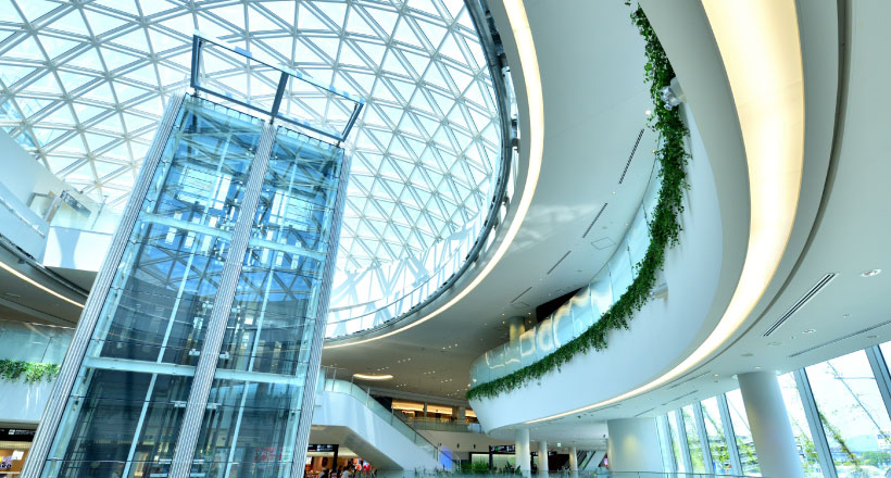 年間旅客数は日本第3位(2022年度)。空港直結の市営地下鉄で博多駅から約5分のクイックアクセス。国内線ターミナルビル隣にはエアポートシティが誕生し、買い物や観光のハブとしても人気が上昇している。