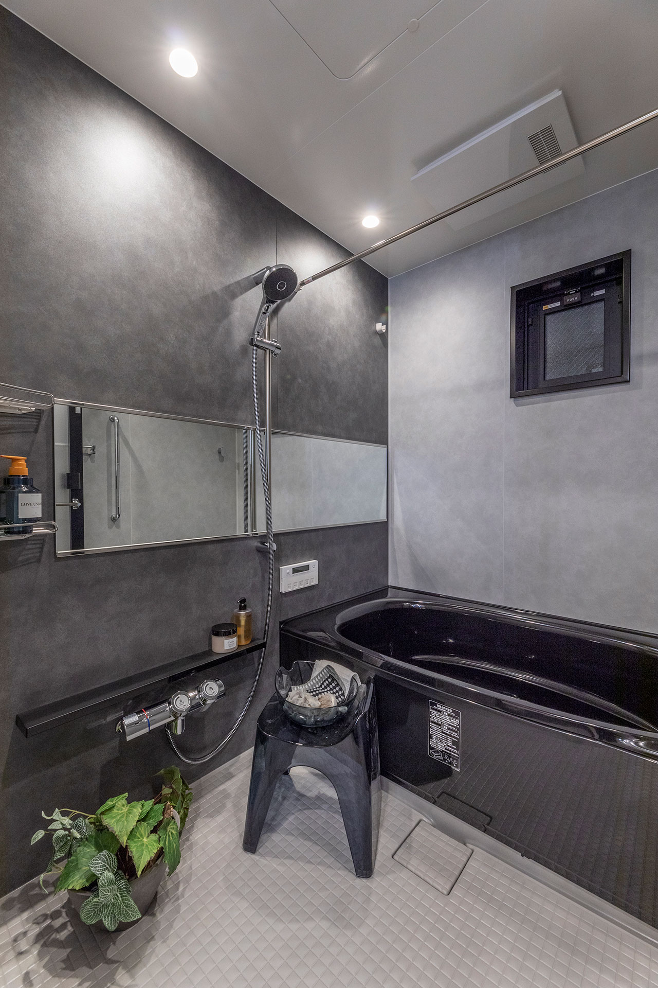 素材や製造方法にこだわり、なめらかな光沢を実現した高品位な浴槽です。輝く『ラメ』が、奥行き感がある意匠を実現し、上質なバスルームを演出します。