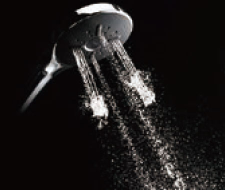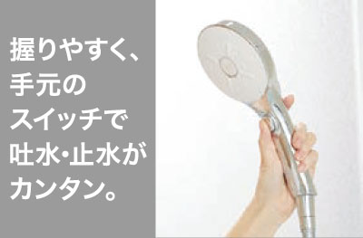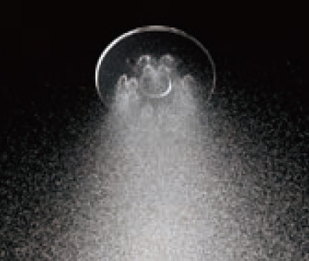 ソフトな浴び心地のシルクミスト、断続的な水流で刺激的なパワーマッサージ、空気を含んだ大粒のアクアスプレー、3種類の吐水が楽しめます。