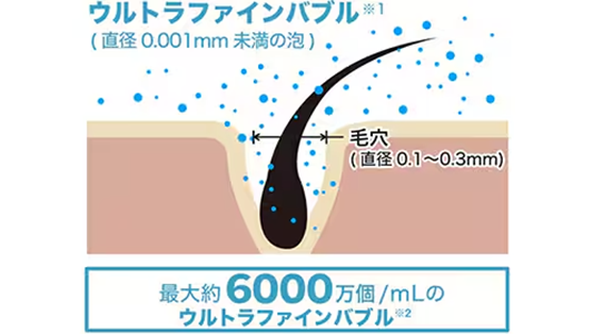 「シルクミスト吐水」モードでは、直径0.001 ㎜未満のウルトラファインバブルが優しく毛穴に入り込み、皮脂汚れをしっかり洗い流します。