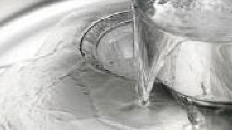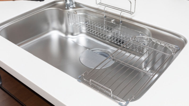シンクの底に段差を付けているので、排水口の上に鍋を置いても水の流れを妨げません。