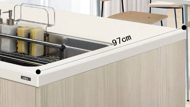 広々としたカウンターが魅力の奥行き97cm。オープンで快適な空間をつくります。