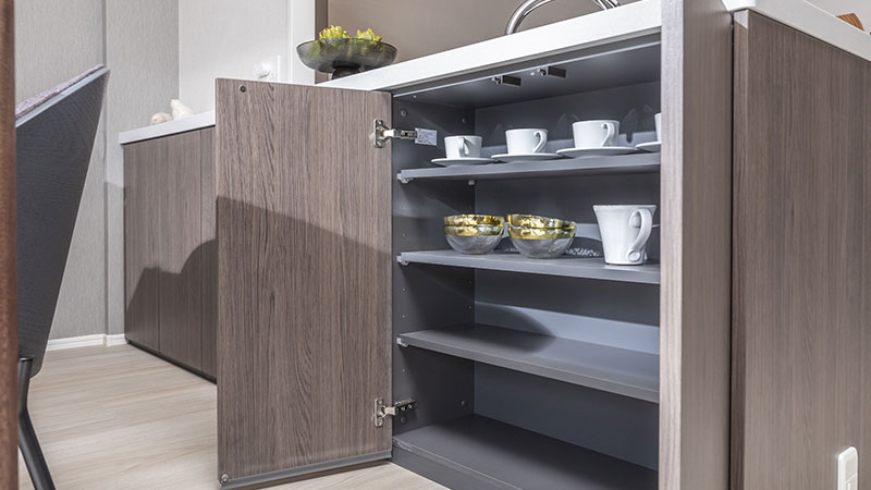 キッチンスペースとのバランスを考えたキッチン背面収納を標準装備。たっぷりと食器やコップなどがしまえキッチンワークがより快適・軽快になります。