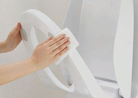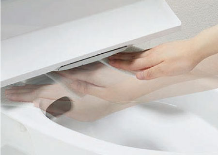 便座のつぎ目をなくし、便座裏は防汚素材だから、汚れもサッとひと拭き。