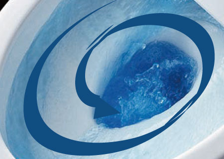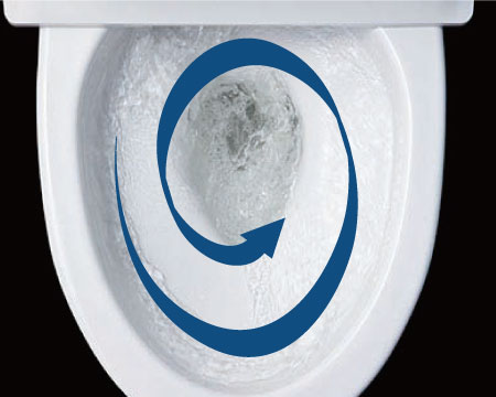 強力な水流が便器鉢内のすみずみまで回り、少ない水でもしっかり汚れを洗い流します。