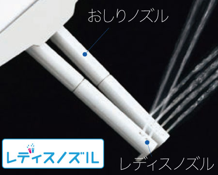INAXはノズルが2本。おしり洗浄用ノズルとは別に、女性にやさしいビデ洗浄用ノズルを搭載しました。