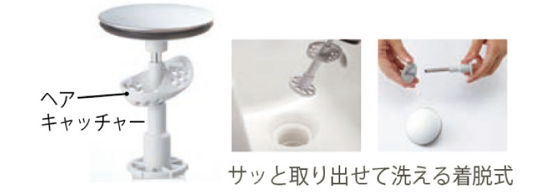ヘアキャッチャーがななめになったので、ゴミをキャッチする部分と水を通す部分が分かれ、水はけが良くなりました。