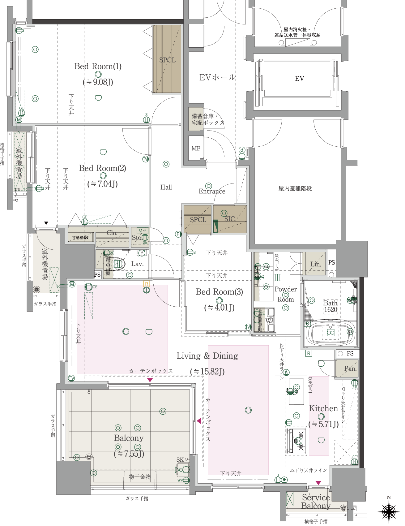 - ※掲載の図面は設計段階の図面をもとに描き起こしたもので実際とは異なる場合がございます。行政の指導、施工上の都合及び改良のため、変更する場合があります。