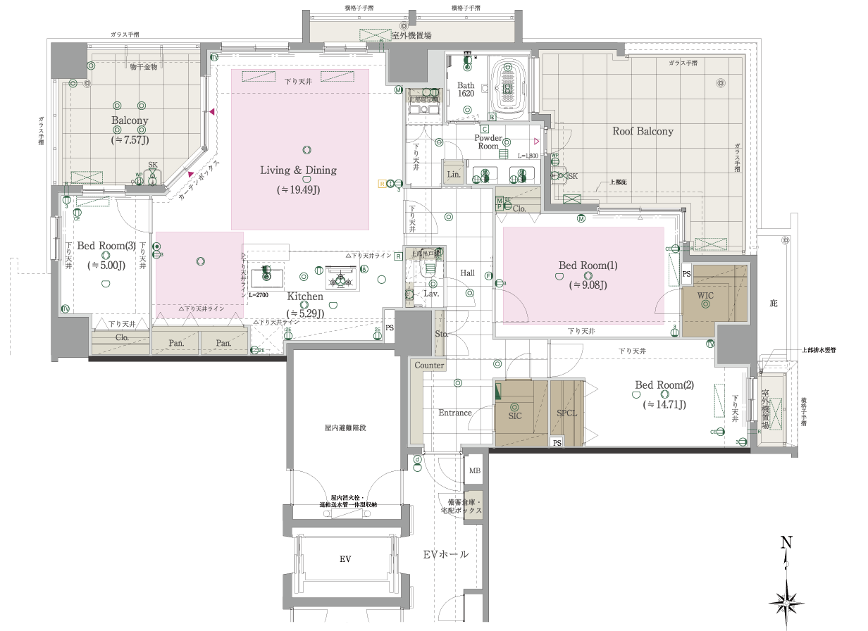 - ※掲載の図面は設計段階の図面をもとに描き起こしたもので実際とは異なる場合がございます。行政の指導、施工上の都合及び改良のため、変更する場合があります。