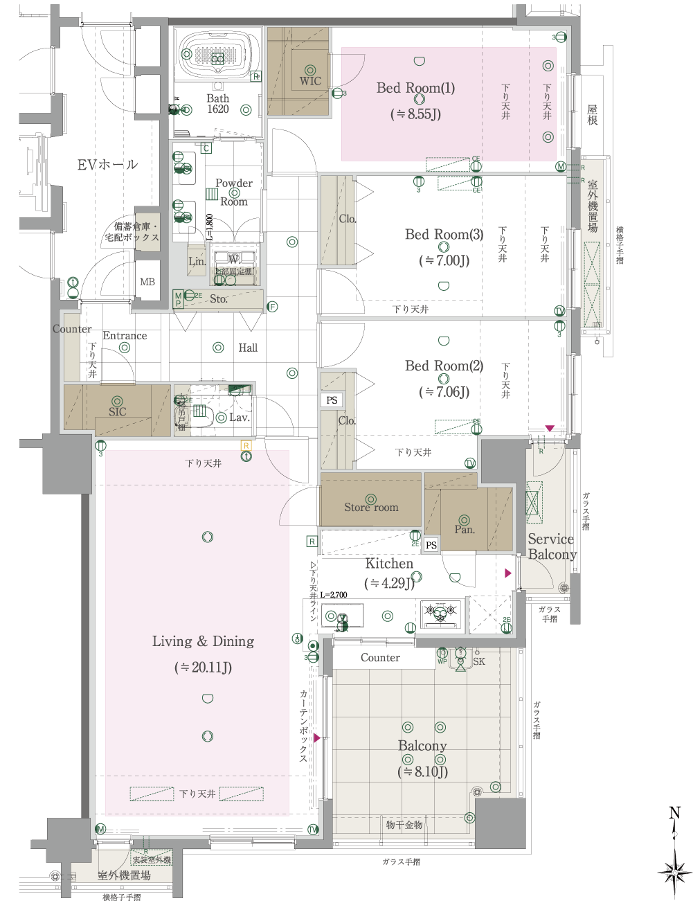 - ※掲載の図面は設計段階の図面をもとに描き起こしたもので実際とは異なる場合がございます。行政の指導、施工上の都合及び改良のため、変更する場合があります。