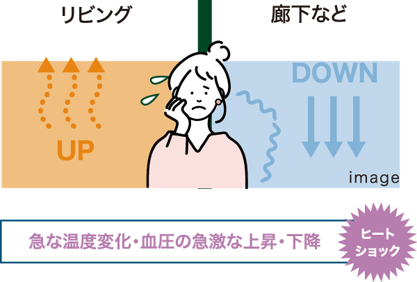断熱性能が低い住宅は、冬の暖房時の部屋間の温度差が大きくヒートショックのリスクが高いと言われています。また、夏場の住宅内での熱中症につながる危険性もあります。