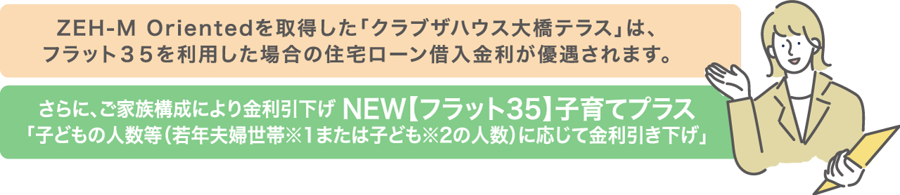 - ※詳しくは【フラット35】ホームページ「子育て世帯を応援する【フラット35】子育てプラス2024年2月13日スタート!!~令和5年度補正予算における制度拡充~」をご参照下さい。また、制度に関しては将来変更となる可能性があります。