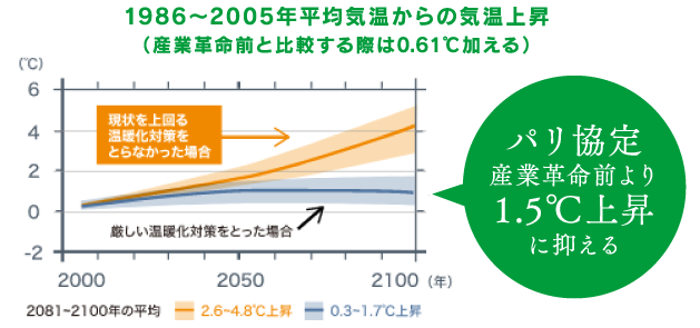 - ※今世紀末までの気温上昇予測出典:IPPC第5次評価報告書、外務省・環境省ホームページより